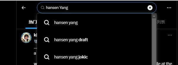 ?在某社交网站搜索“杨瀚森”会出现“杨瀚森约基奇”下拉词条 xiaoqiao 2025年07月15日 22:07 102 0 7月13日讯 今日NBA夏季联赛开拓者86-96不敌灰熊。本场比赛杨瀚森得到10分5篮板3助攻1盖帽5失误3犯规。值得一提的是,在某知名社交网站上搜索hansen yang会显示hansen yang jokic(杨瀚森约基奇)的下拉词条。