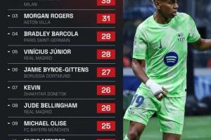 9. 奥利塞(拜仁慕尼黑) - 25 次